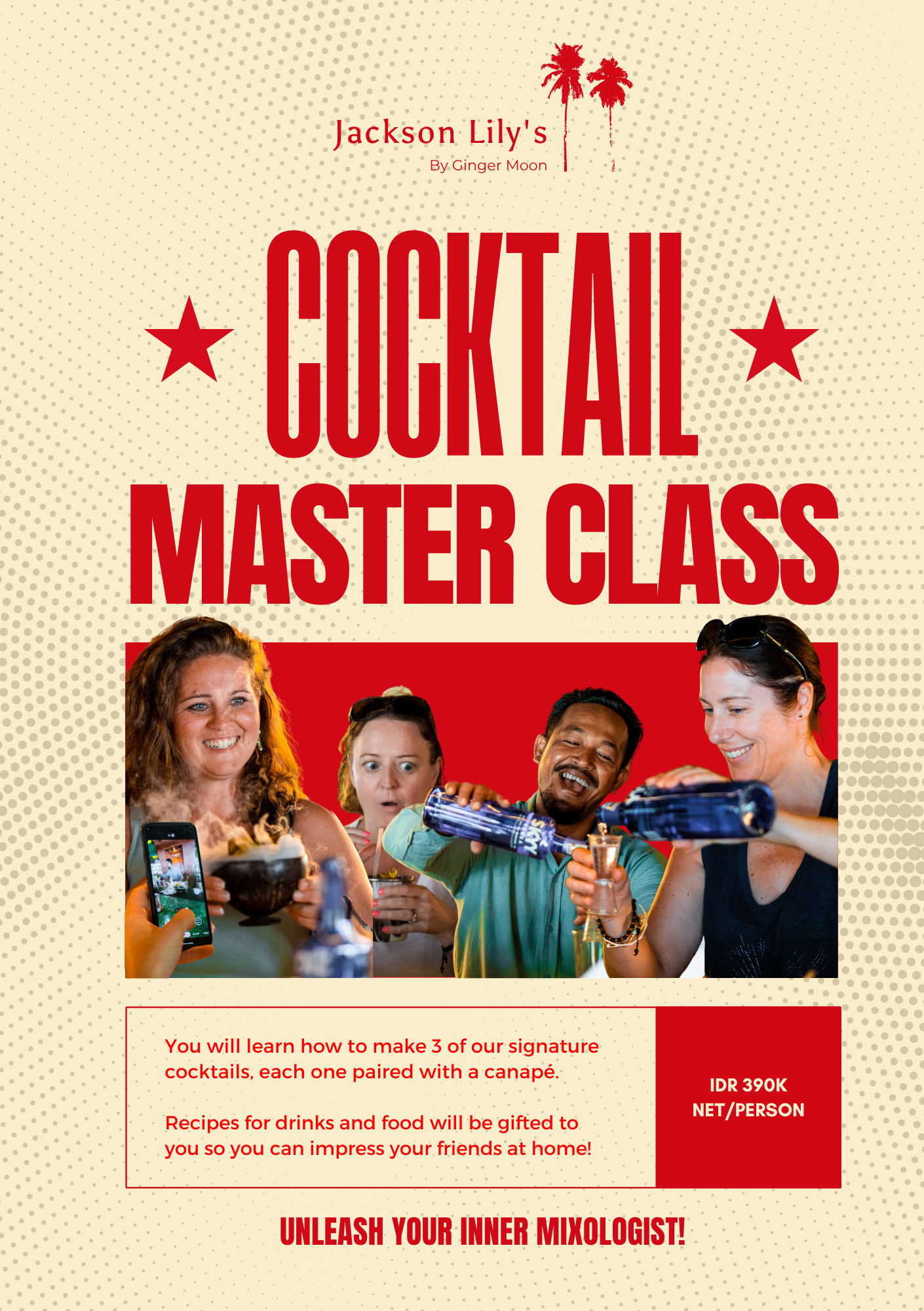 Welcome to our menu at Jackson Lily’s, where island-inspired dining meets bold flavour and great value. Explore our full range of food and beverages—whether you’re in the mood for a casual all-day meal, a more indulgent dinner, or something special for the little ones. Simply download the menu below to browse at your leisure, and get ready to experience “Bali on a plate.”